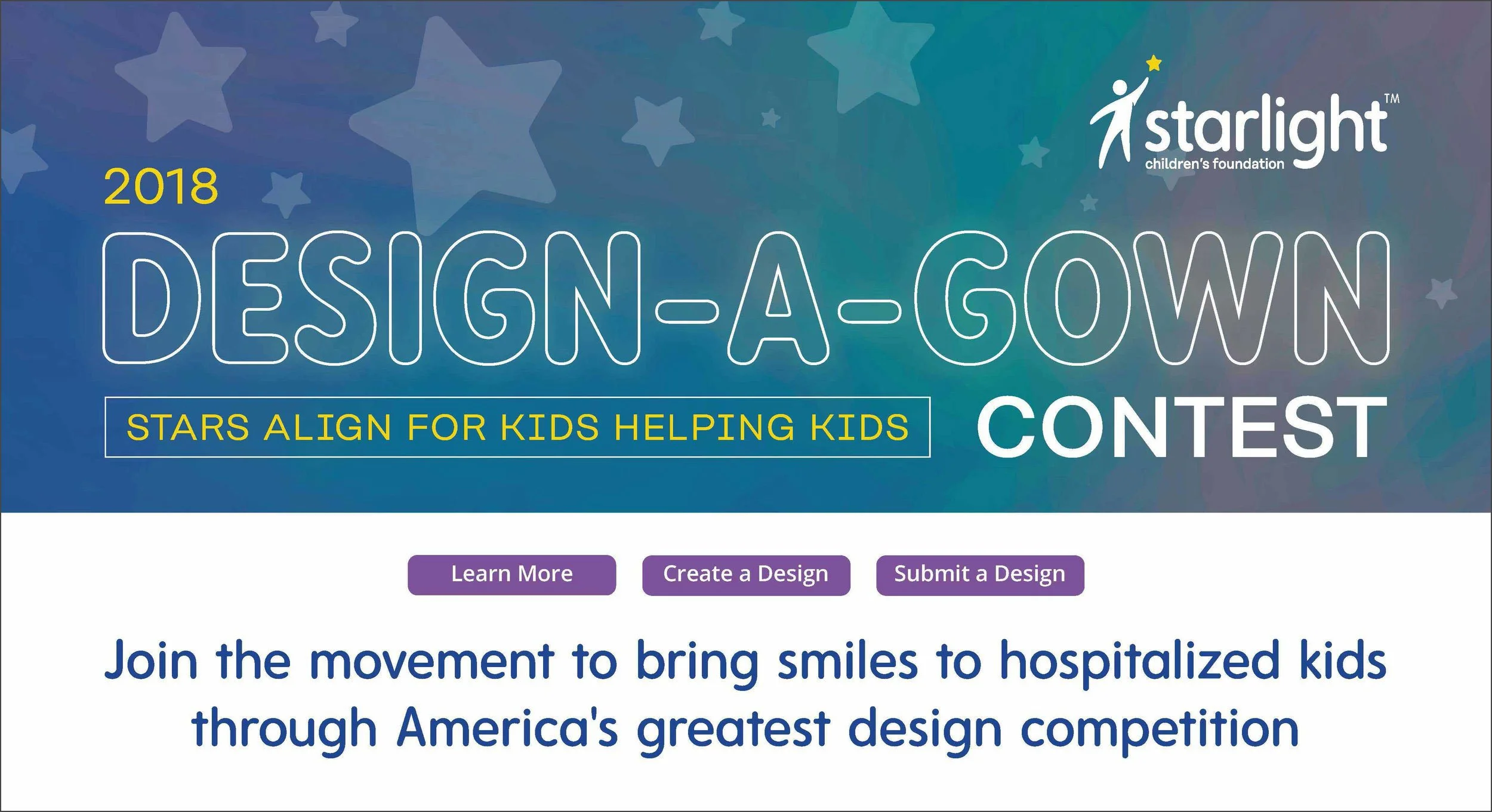 The Starlight Gowns program is one biggest programs coming out of Starlight Children's Foundation. Through the inaugural Design-a-Gown contest launched in 2018, people from across America created their own hospital gown design in hopes of their design becoming the next Starlight Gown that gets produced. Starlight Gowns make hospitalized kids feel like superstars by replacing unattractive, uncomfortable and embarrassing hospital garments with high-quality, comfortable, and brightly-colored gowns. These gowns transform children into astronauts, princesses, cowboys, and other characters so they can still have fun and enjoy being kids.